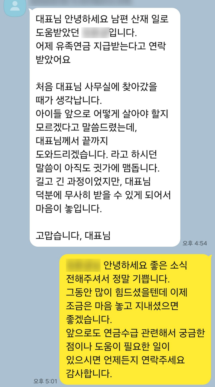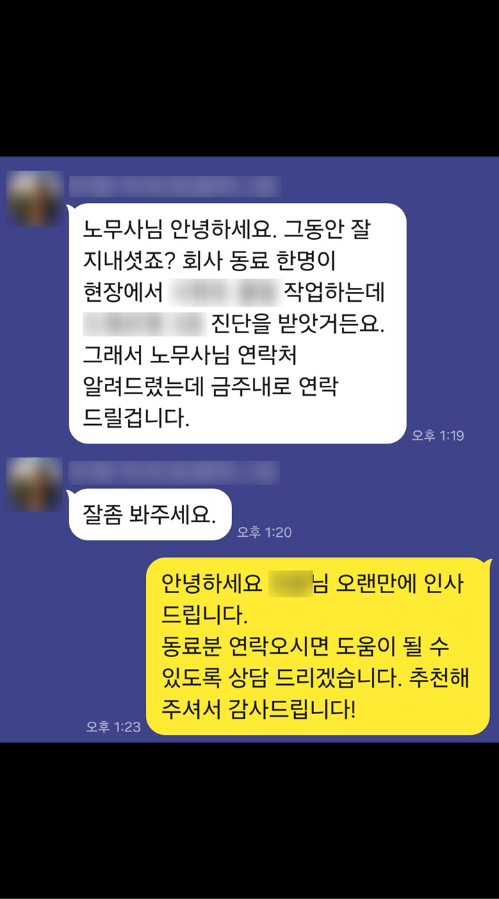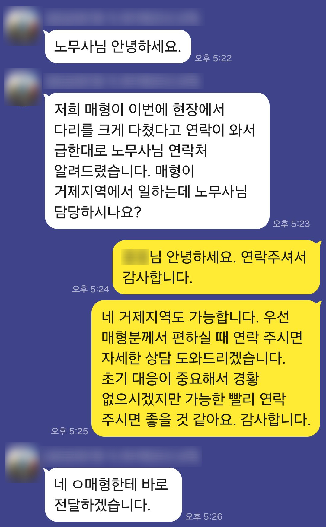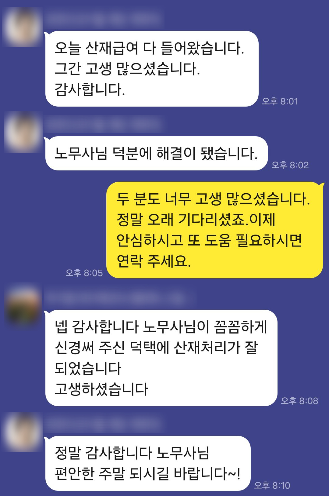 산재 전문 노무사가 상담부터 보상 완료까지 의뢰인만을 위해 전담합니다.